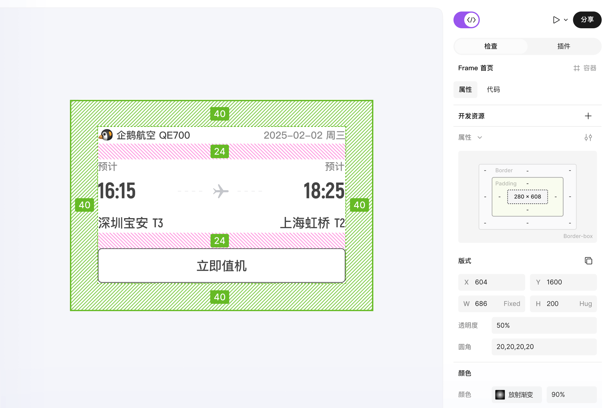 可视化查看尺寸、间距、样式等信息,不遗漏任何细节,从设计到开发效率拉满